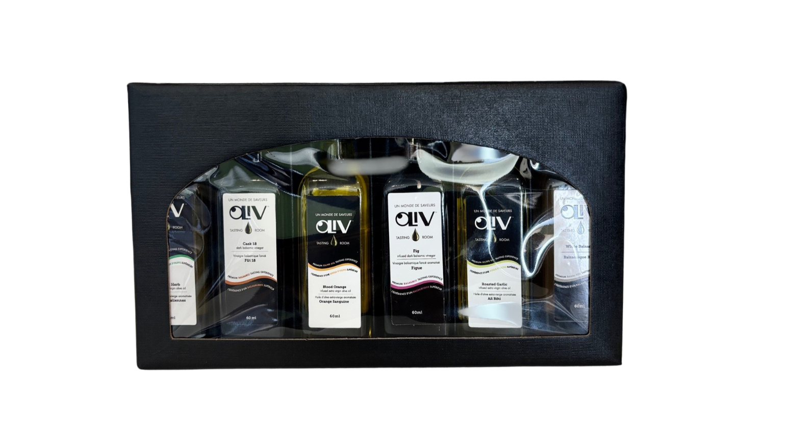 Discover the essence of flavor with our gift pack featuring our top 6 best-selling Extra Virgin Olive Oils and Balsamics, each in 60ml bottles. This selection is perfect for culinary enthusiasts and home cooks alike!